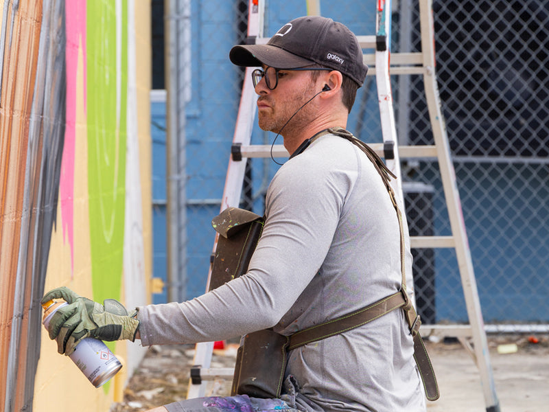 Once the design is finalized I source materials and schedule the install. Most murals take 3-7 days to complete. Look how legit I look with all my gear!